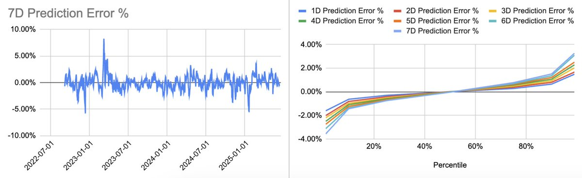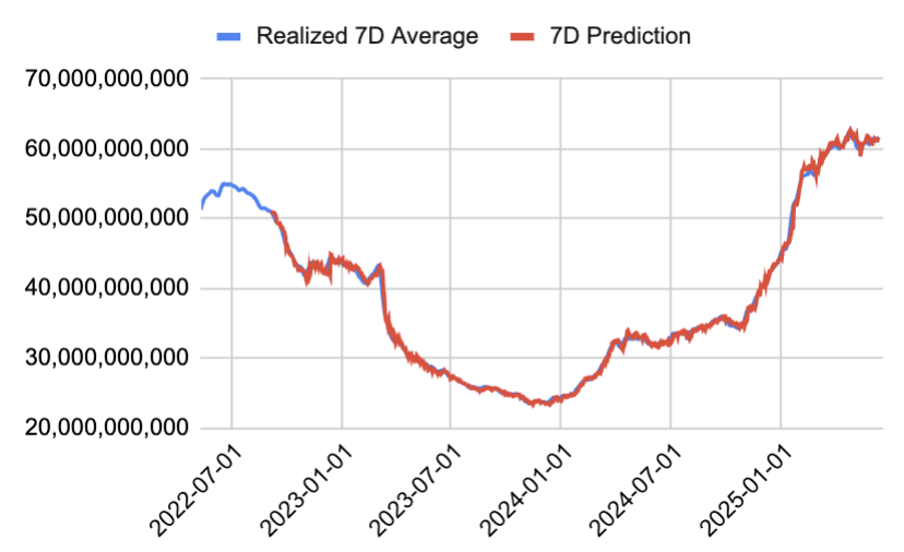 这一方法在预测供应量的短期方向性变化方面非常有效。自 2022 年以来,模型预测的 7 天平均 USDC 总供应量有 80% 的概率落在预测结果的 ±1.5% 范围内。